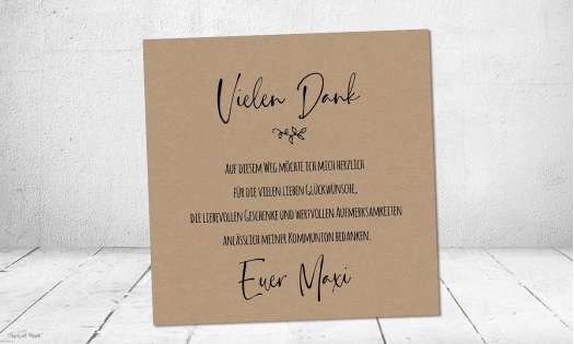 Diese moderne Dankeskarte zur Kommunion oder Konfirmation ist auf hochwertigem Kraftpapier gedruckt und eine wunderschöne Geste an Ihre Gäste und Verwandten.