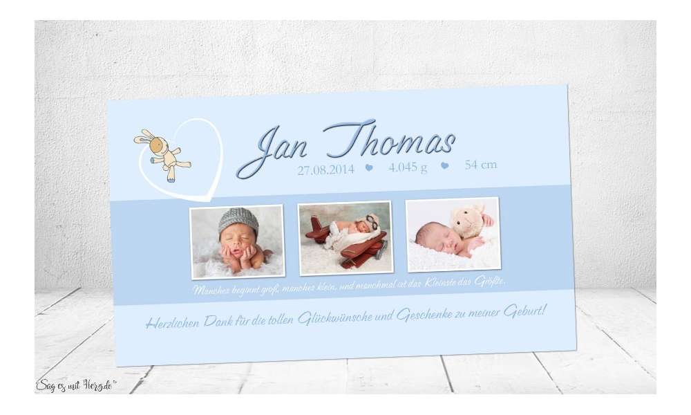 Mit dieser bezaubernden Babykarte können Sie sich bei Ihren Freunden und Verwandten auf besondere Art für die lieben Glückwünsche und Geschenke zur Geburt Ihres Babys bedanken.