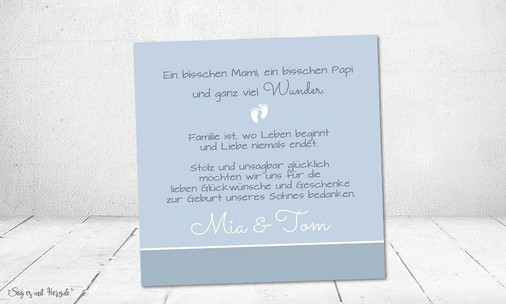 So wird jede Dankeskarte Geburt Vintage Blau individuell, persönlich und einzigartig – ein echtes Unikat, das Eure Dankbarkeit mit Herz ausdrückt.