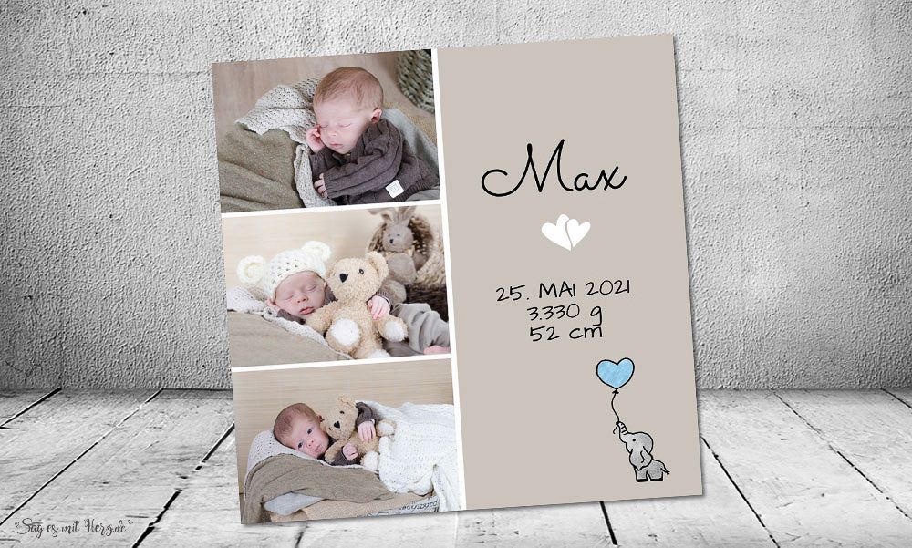 • Farben passen wir gerne an Eure Babyfotos an (hellblau, rosa, mint oder beige-taupe)