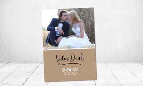 Bedanken Sie sich mit dieser traumhaften Danksagungskarte im Vintage Stile bei Ihren Gästen.