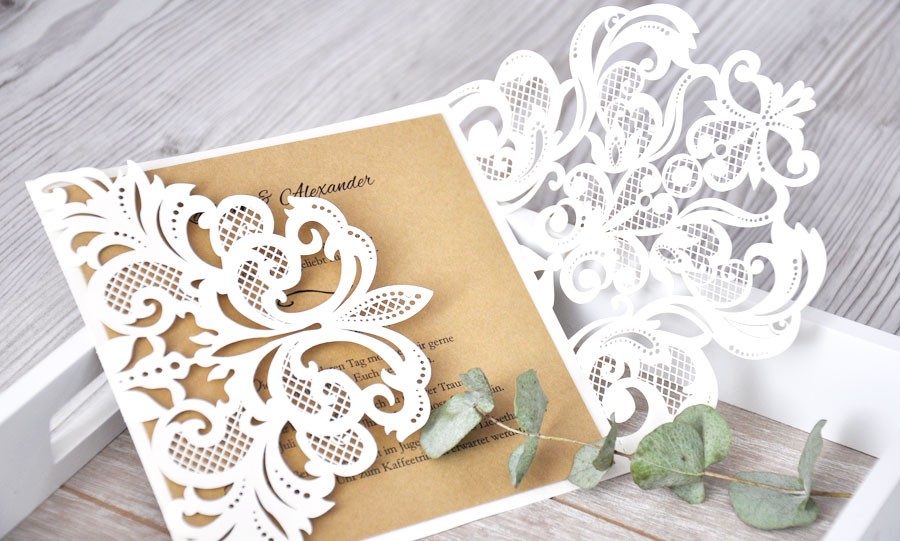 Auf pinterest findet Ihr bereits jetzt eine Übersicht über unsere neuen verfügbaren Hochzeitseinladungen im Vintage Stil mit Lasercut Spitze.