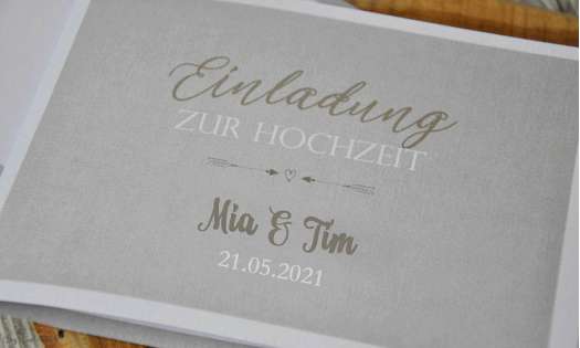 Verschicken Sie besonders edle Hochzeitseinladungen, die durch warme Creme- und Brauntöne eine besondere Eleganz und Hochwertigkeit ausstrahlen. Mit diesen Einladungskarten können Sie Ihrer Kreativität freien Lauf lassen. Teilen Sie uns Ihre Vorstellungen über die Produktanpassung mit und wir setzen diese dank unseres kostenlosen Gestaltungsservices für Sie um und versprechen Ihnen ein ganz persönliches Ergebnis.