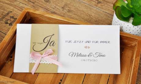 Vintage Einladungskarten Hochzeit Kraftpapier Banderole Spitze rosa