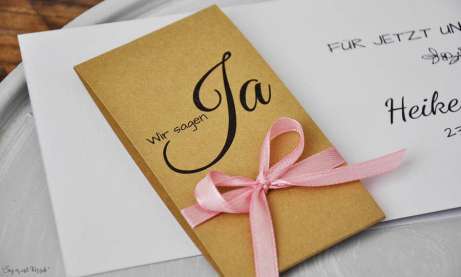 Alle unsere Einladungskarten werden persönlich für Sie angefertigt. Die individuelle Anfertigungszeit für Ihre Hochzeitseinladung als Flachkarte können Sie HIER einsehen.