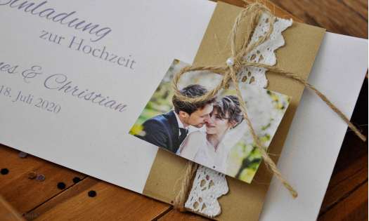 Wir gestalten Ihre Einladungskarten zur Hochzeit anhand Ihrer Wünsche. Unsere kreative Designerin kann auf viele Jahre Erfahrung zurück blicken und bringt all diese Erkenntnisse in die Gestaltung Ihrer ganz persönlichen Einladungskarten mit ein.