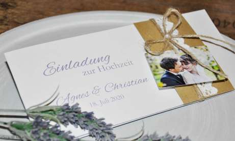 Was könnte es schöneres geben, als Ihr persönliches Lieblingsfoto als kleines Minifoto mit an der Einladungskarte zu dekorieren. So schicken Sie Ihren Gästen bereits mit der Einladung einen ganz persönlichen Gruß und steigern deren Vorfreude auf Ihre besondere Hochzeit im Vintage Style.
