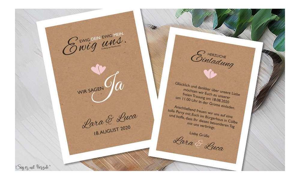 Einladungen Hochzeit - Rustikales Kraftpapier mit romantischem Spruch