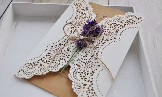 Einladungskarten Hochzeit Lasercut Kraftpapier Lavendel