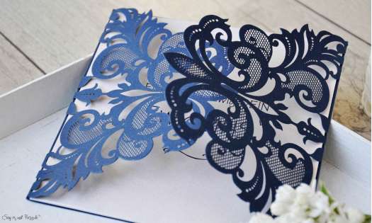 Alle unsere Einladungskarten werden persönlich für Sie angefertigt. Die individuelle Anfertigungszeit für Ihre Einladungskarte mit Lasercut Spitze können Sie HIER einsehen.
