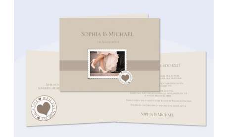 Wir gestalten Ihre ganz persönlichen Einladungen zur Hochzeit, individuell und exklusiv gemäß Ihren Wunschvorstellungen. Ihre Änderungswünsche in Farbe, Text- und Bildanordnung setzen wir selbstverständlich kostenlos für Sie um.