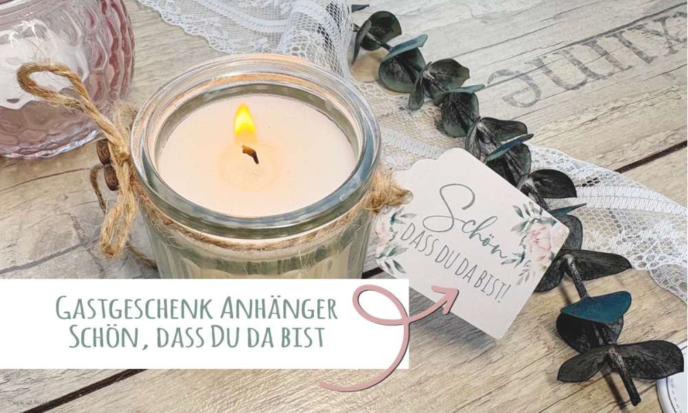 Der Anhänger wird passend zu Deiner Deko gestaltet und enthält und enthält bereits ein kleines Loch, damit Du ihn an Deinem Gastgeschenk befestigen kannst.