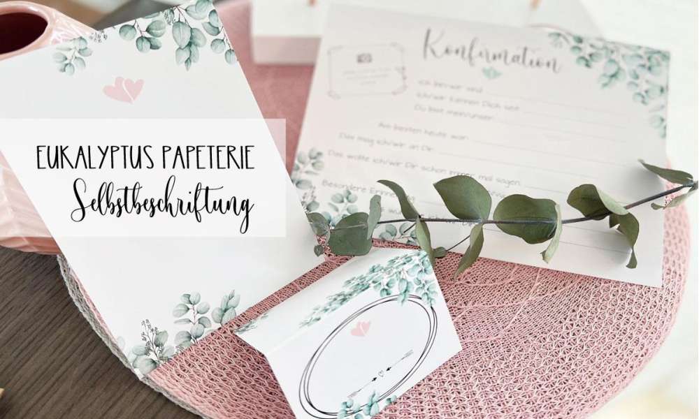 Platzkarten Tischkarten Kommunion Konfirmation als Klappkarte mit Eukalyptus
