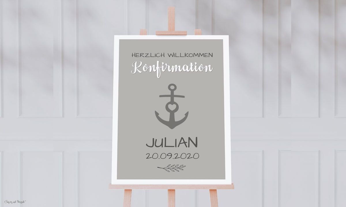 Gestalten Sie den besonderen Tag Ihrer Konfirmation mit einem personalisierten Willkommensschild, das nicht nur einladend wirkt, sondern auch stilvoll in Ihre Feier integriert ist.