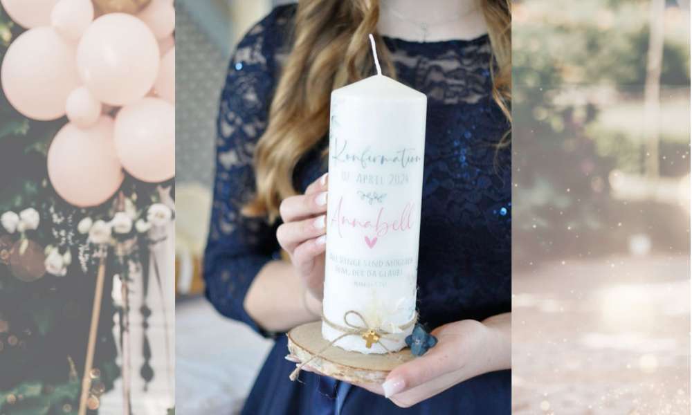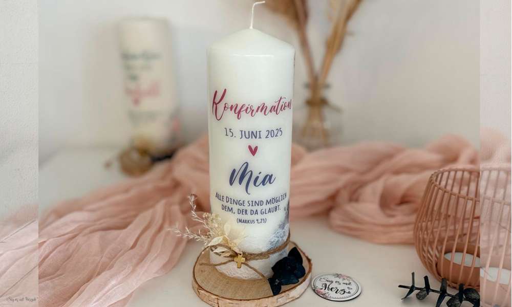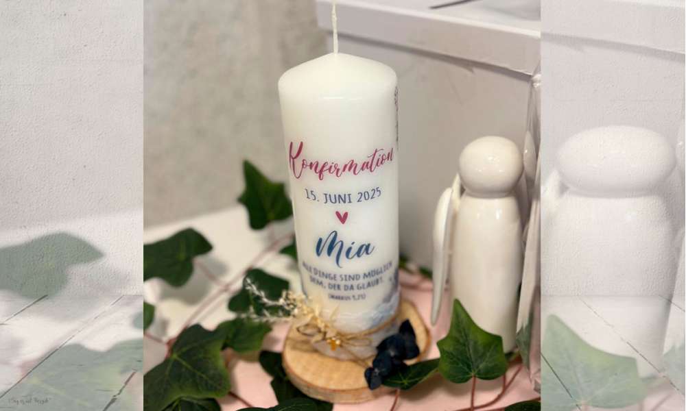 Konfirmationskerze modern - inkl. Name, Konfirmationsspruch & Datum in liebevoller Gestaltung
