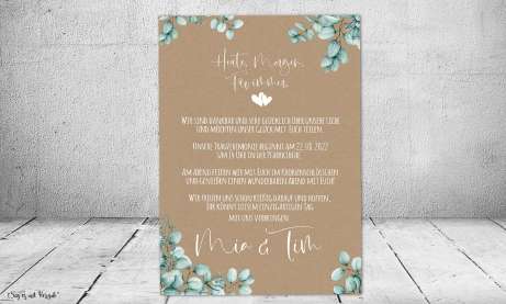 Einladungskarten Hochzeit Vintage Eukalyptus Kraftpapier