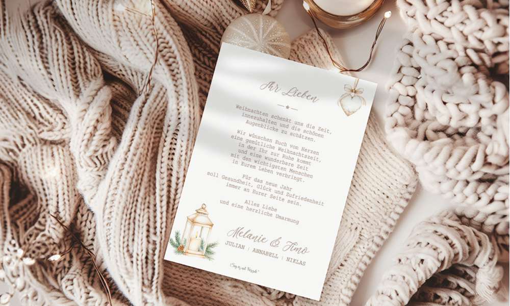 Mit unseren personalisierten Weihnachtskarten für Ihre Firma schenken Sie Ihren Kunden, Geschäftspartnern und Mitarbeitenden einen herzlichen, stilvollen Weihnachtsgruß mit echter Wertschätzung.