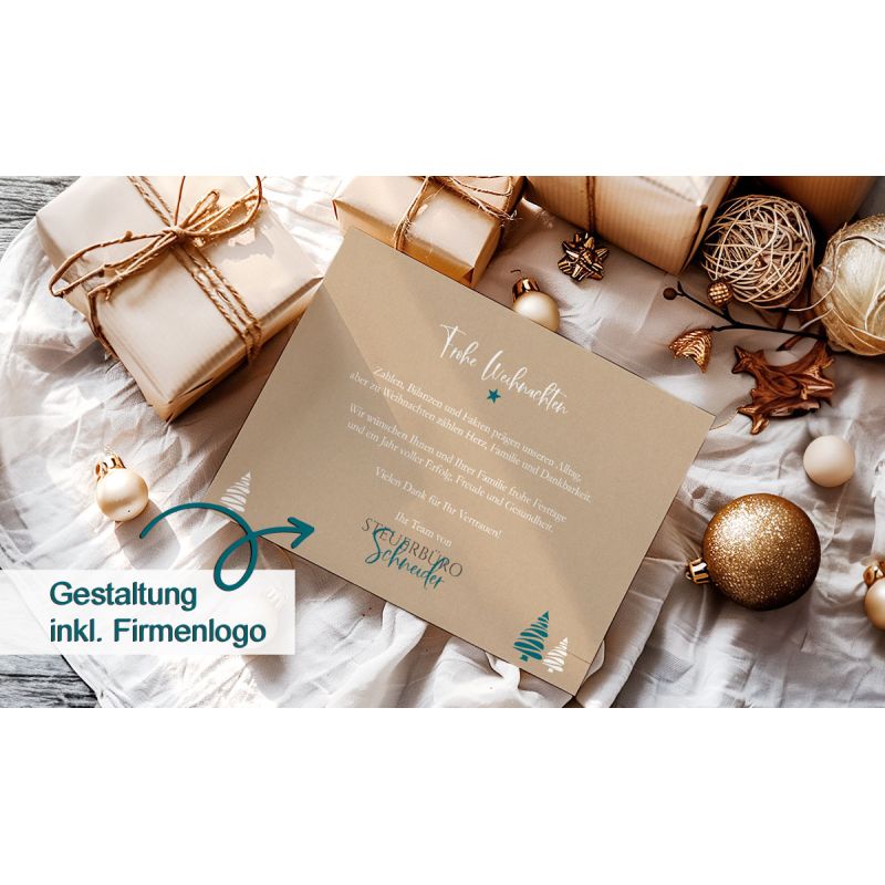 Unsere modernen Weihnachtsgrüße geschäftlich mit Logo zeigen, dass Du Dir Zeit nimmst, echte Dankbarkeit auszudrücken – auf nachhaltige, stilvolle und persönliche Weise.